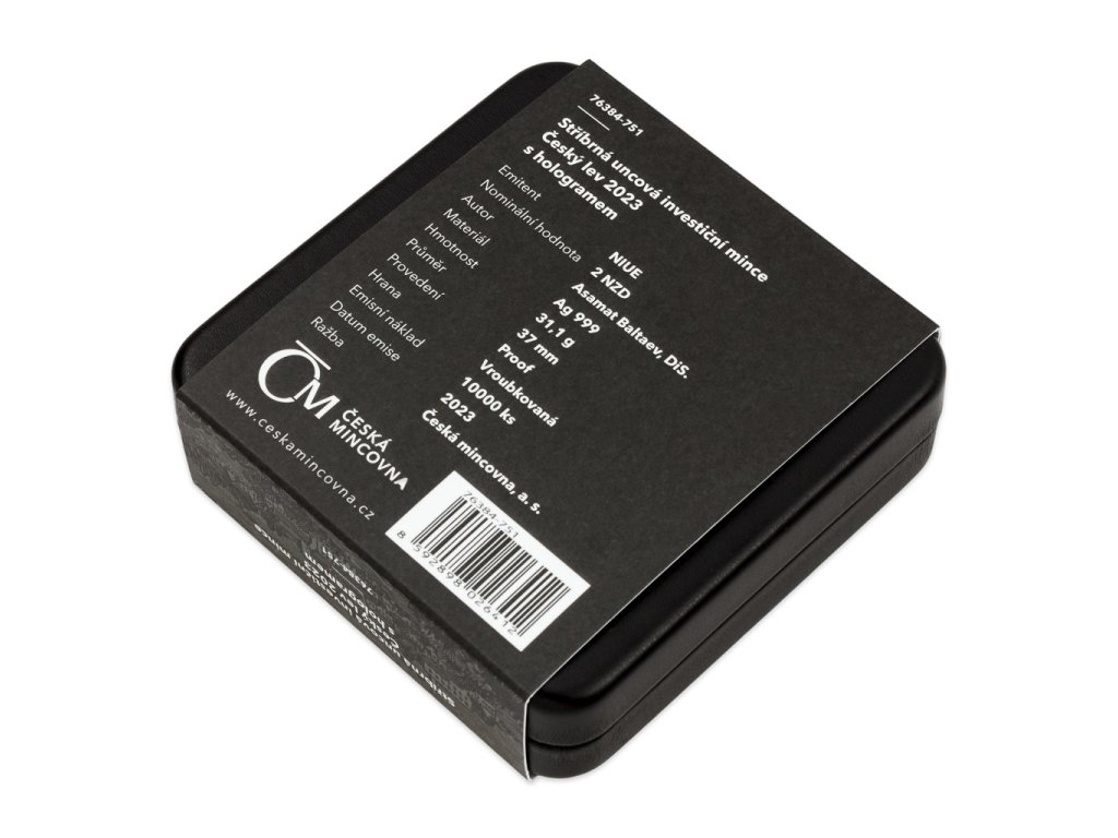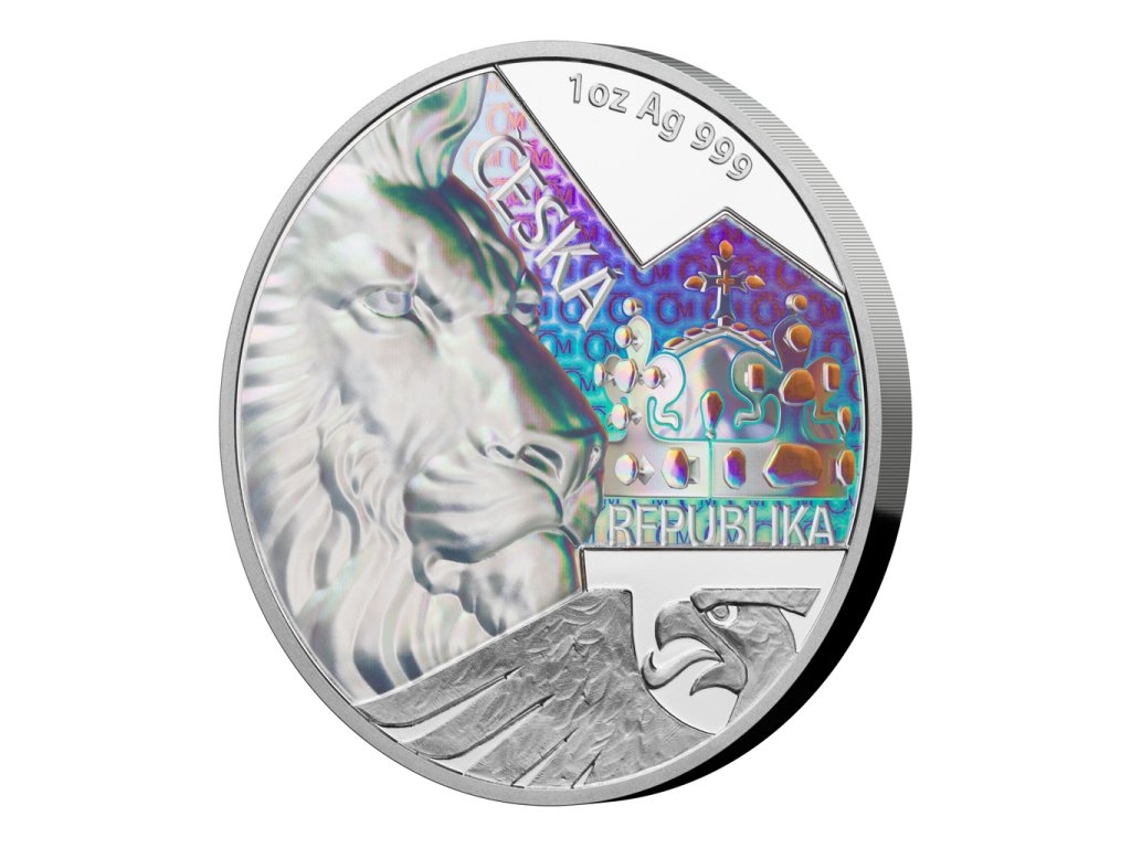 Stříbrná mince Český Lev 1 oz 2023 hologram proof s certifikátem