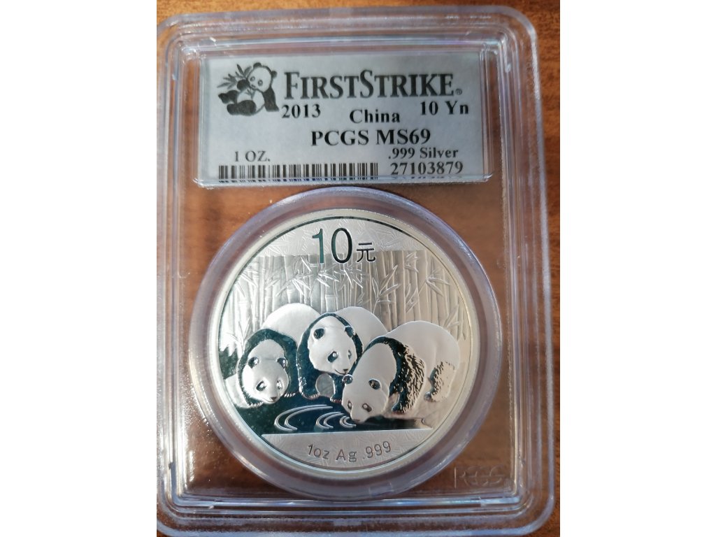 Stříbrná mince Čínská Panda 1 oz 2013 certifikace MS69