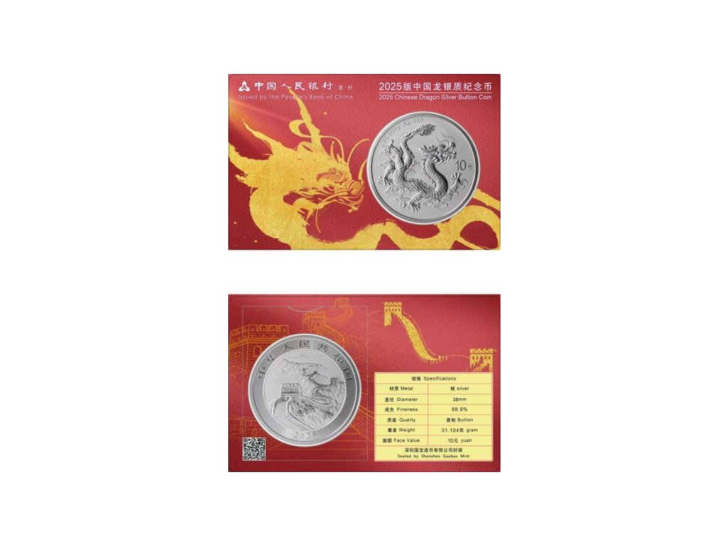 Stříbrná mince Čínský Drak 1 oz 2025 China mint 1. ročník v kartě
