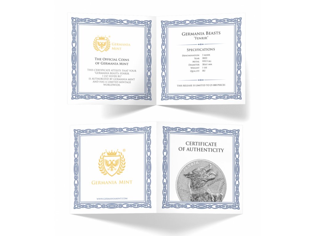 Stříbrná mince Germania Beasts - Fenrir 1 oz 2022 s certifikátem